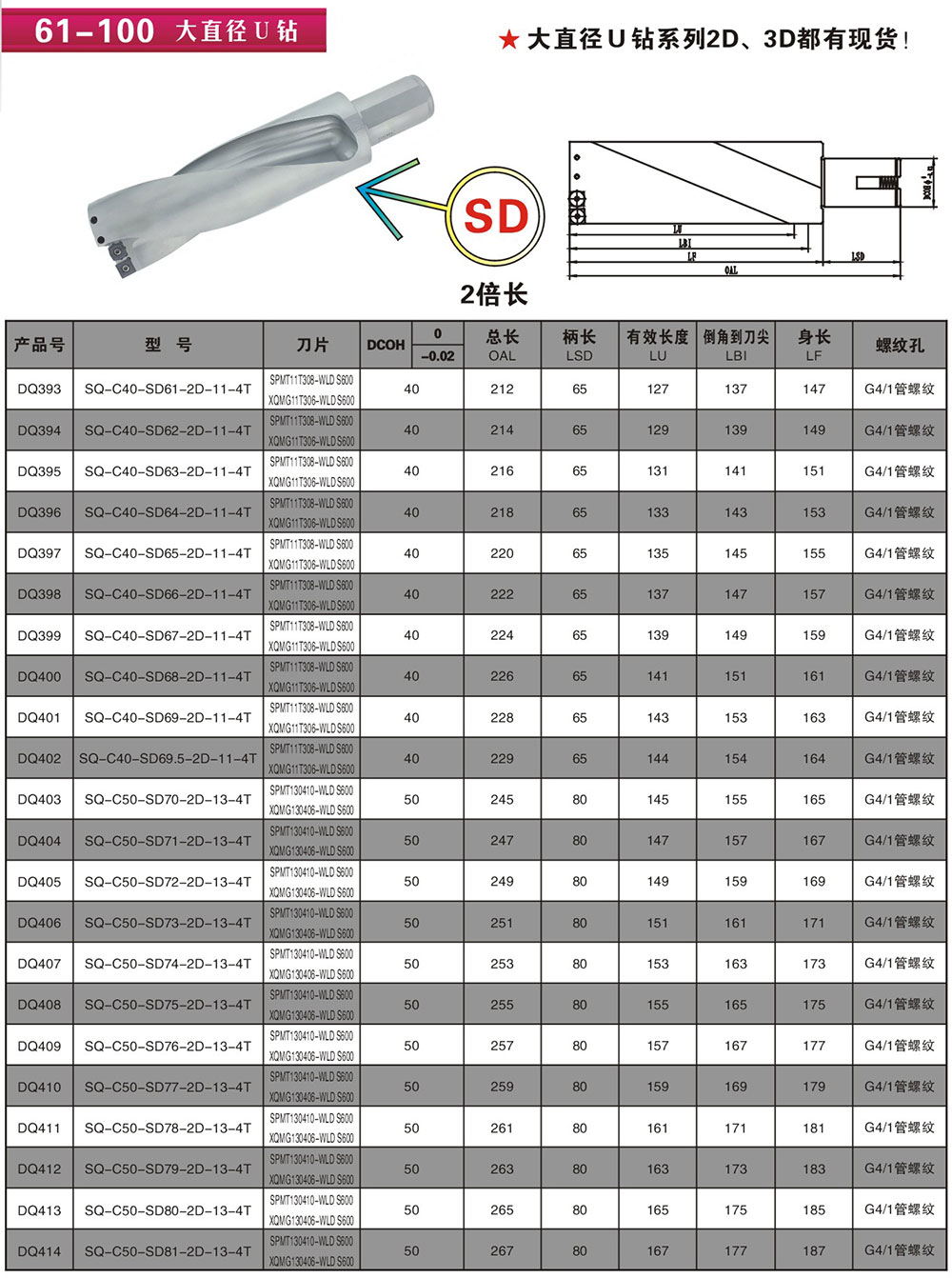 Mo-type - side solid U drill handle
