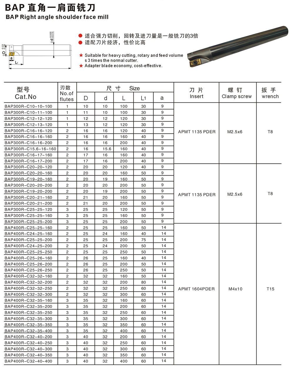 BAP right angle shoulder milling cutter